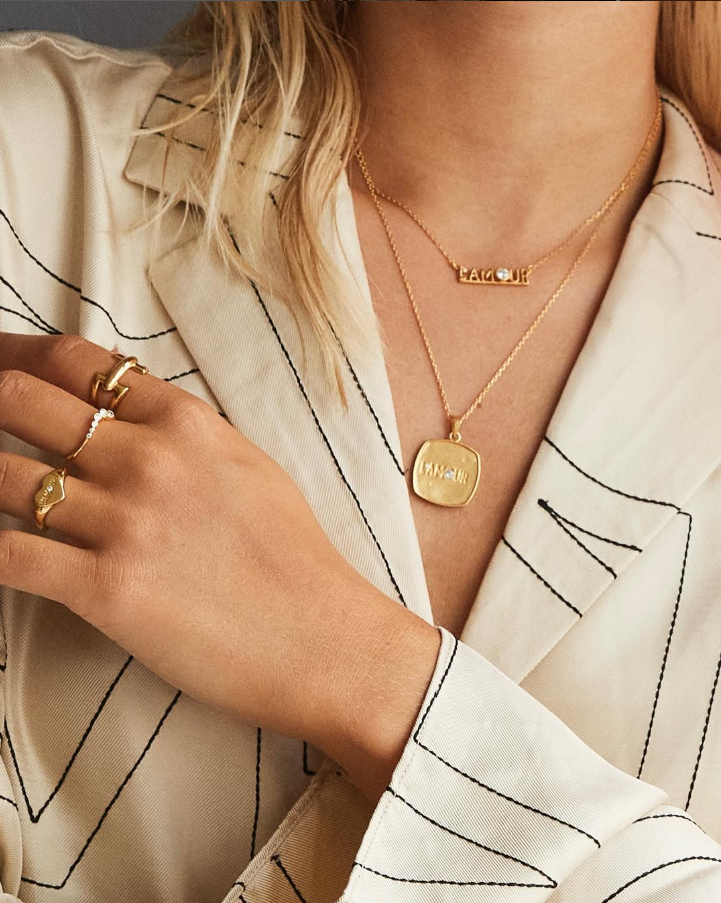 Susanne Friis Bjørner Sølv Forgyldt Halskæde med Plade 1855-2