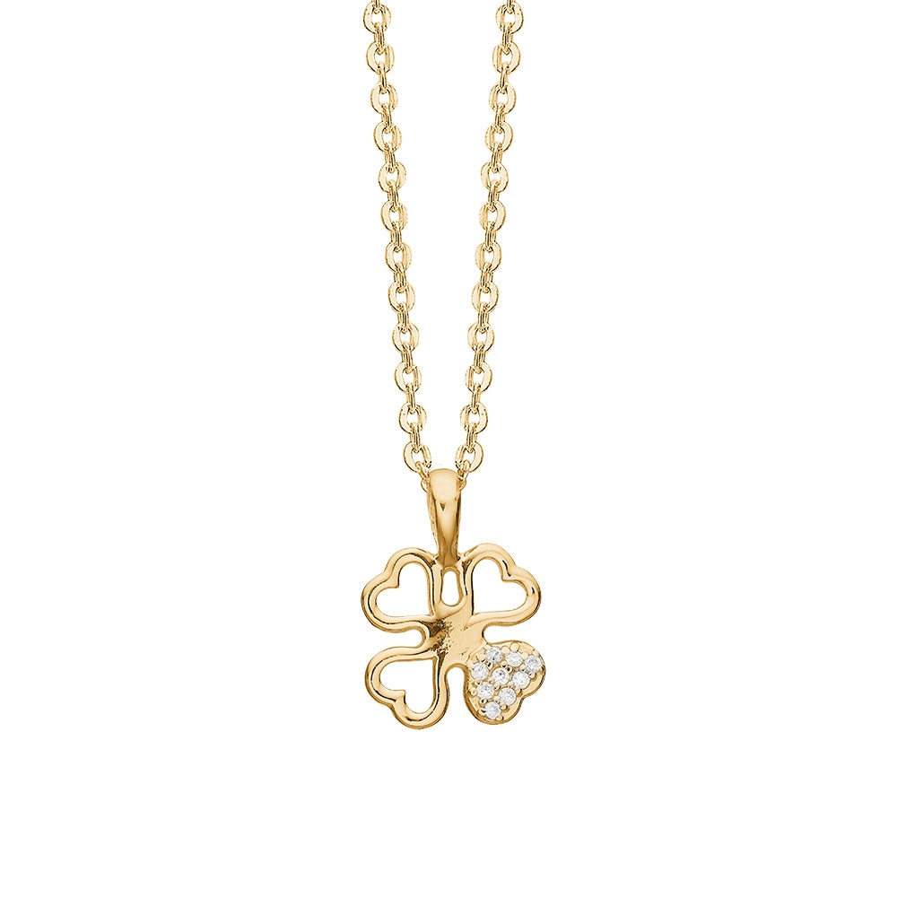 Aagaard 8kt Guld Vedhæng med Firkløver i Forgyldt Kæde 1680-G8-10-45