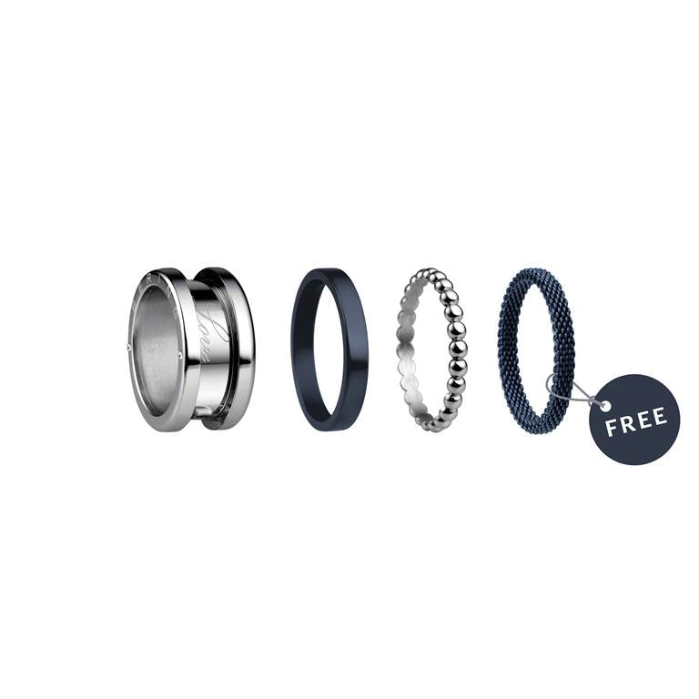 Indeholder 1 sølvpoleret yderring og 3 innerringe.