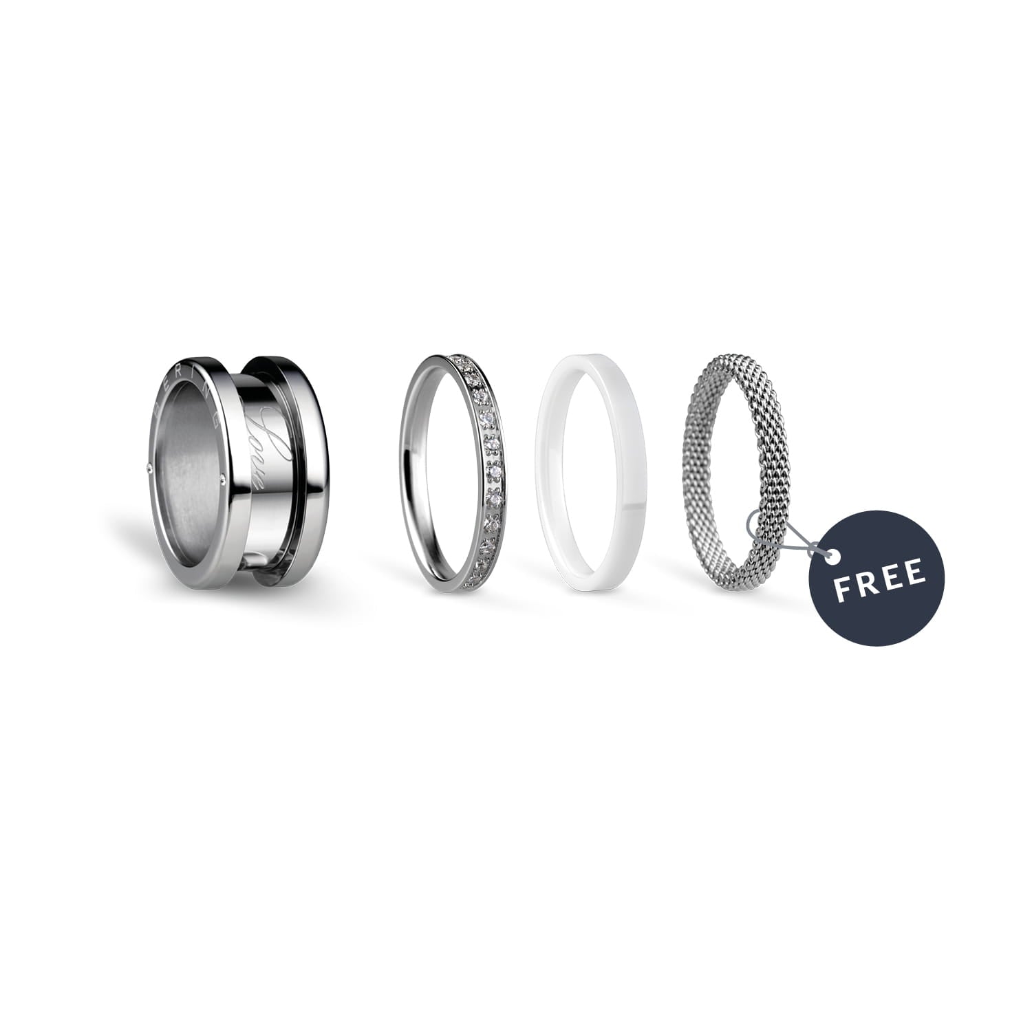 Indeholder 1 sølvpoleret yderring og 3 inderringe.
