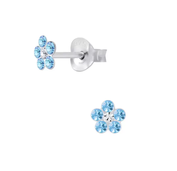 Bidstrup Sølv Børne ørering med Blå Krystal Blomster