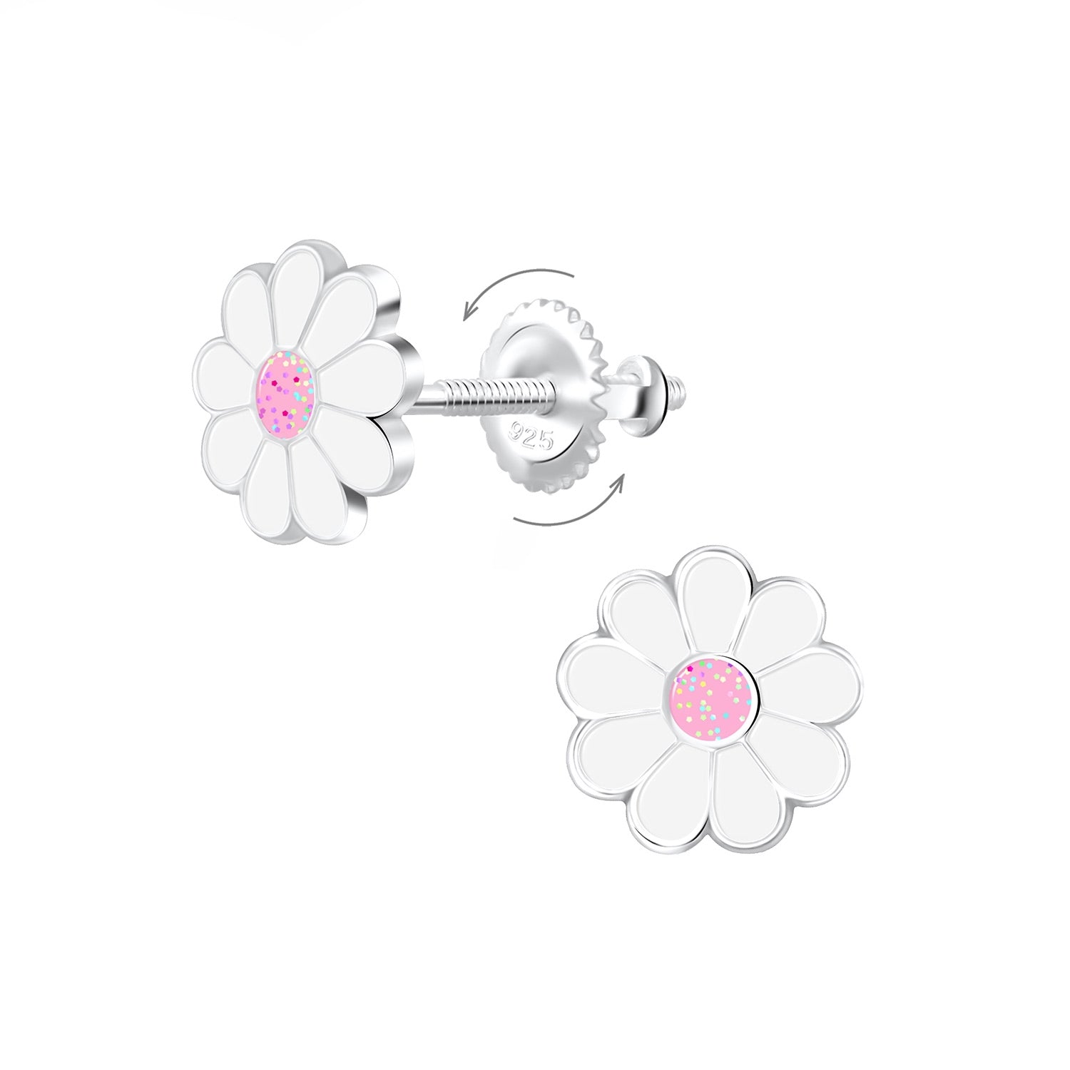 Bidstrup Sølv Børne Ørering med Hvid Blomst Skruelås 10009245