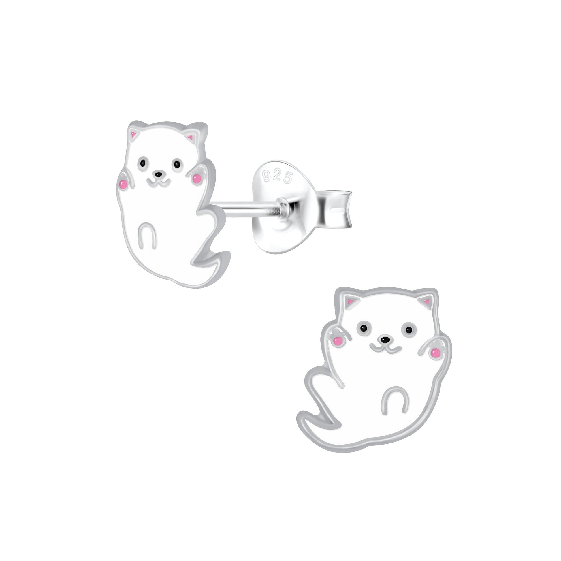 Bidstrup Sølv Børne Ørering med Hvid Kat 10005535