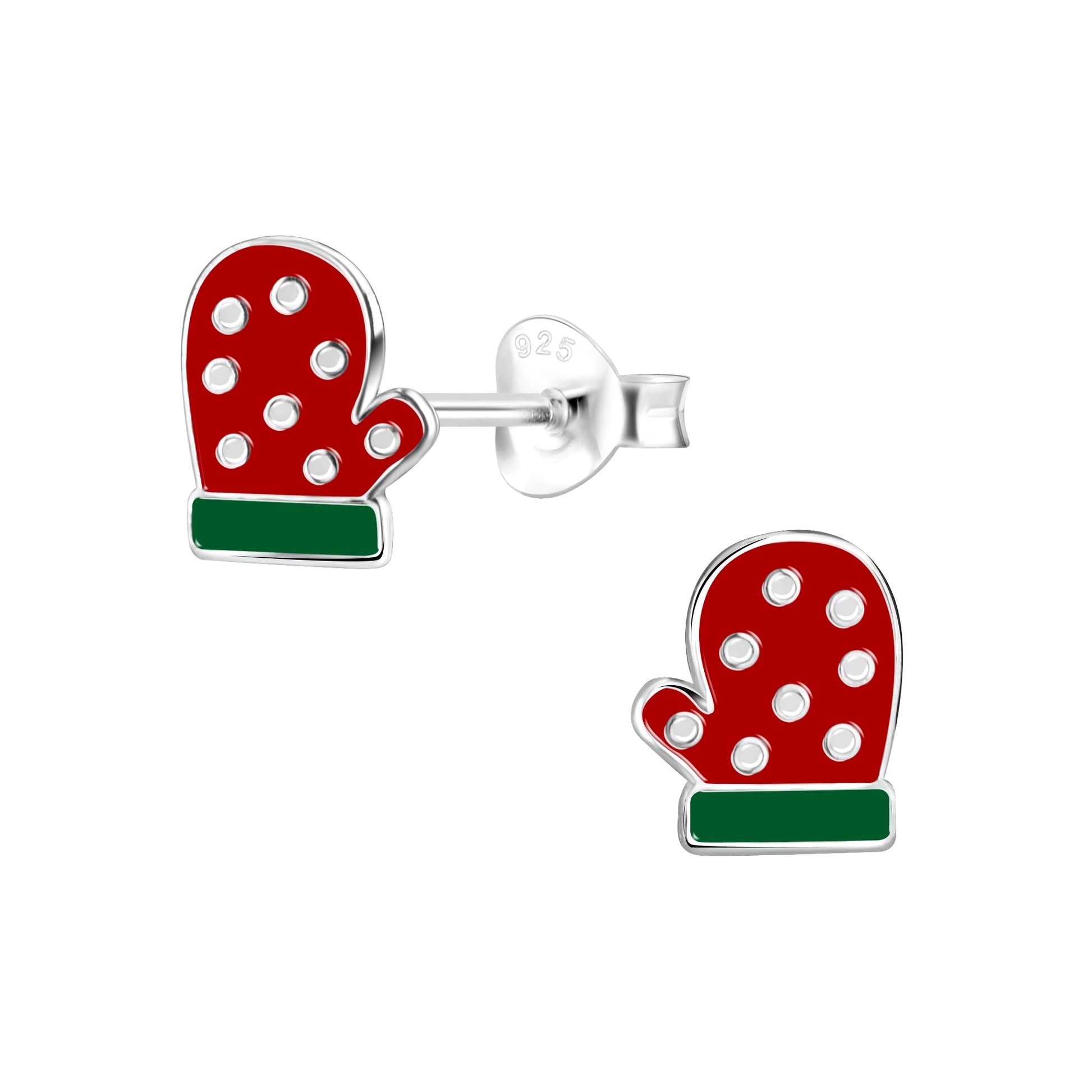 Bidstrup Sølv Børne Ørering med røde Vanter 10010579