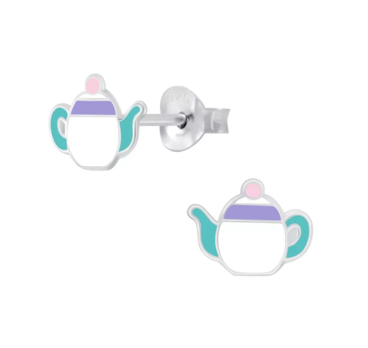 MOTIV | Hvid tepotte med blå, lilla og lyserøde detaljer |