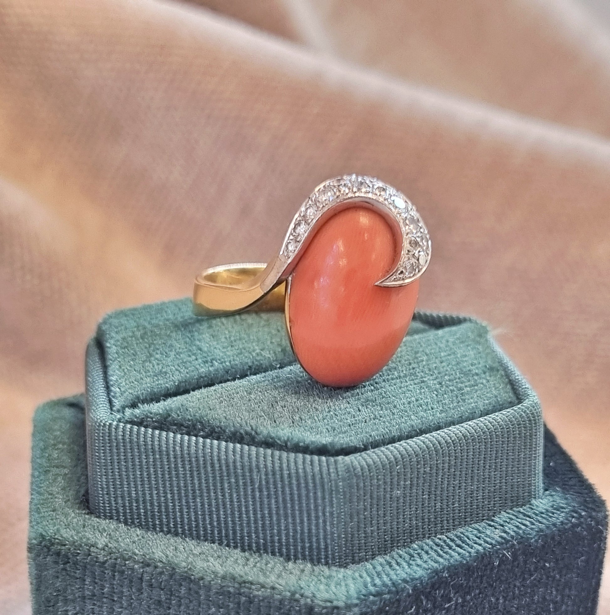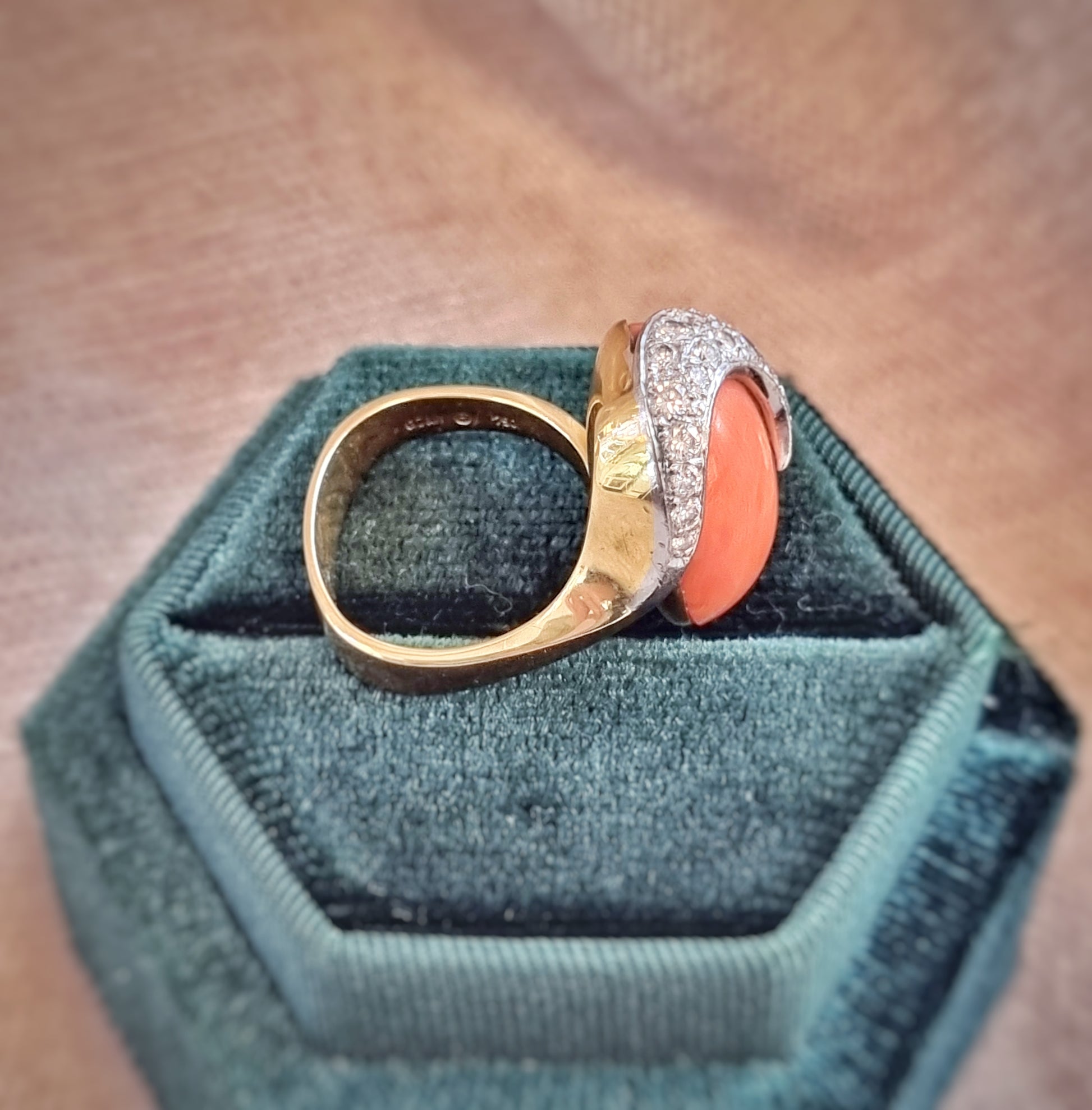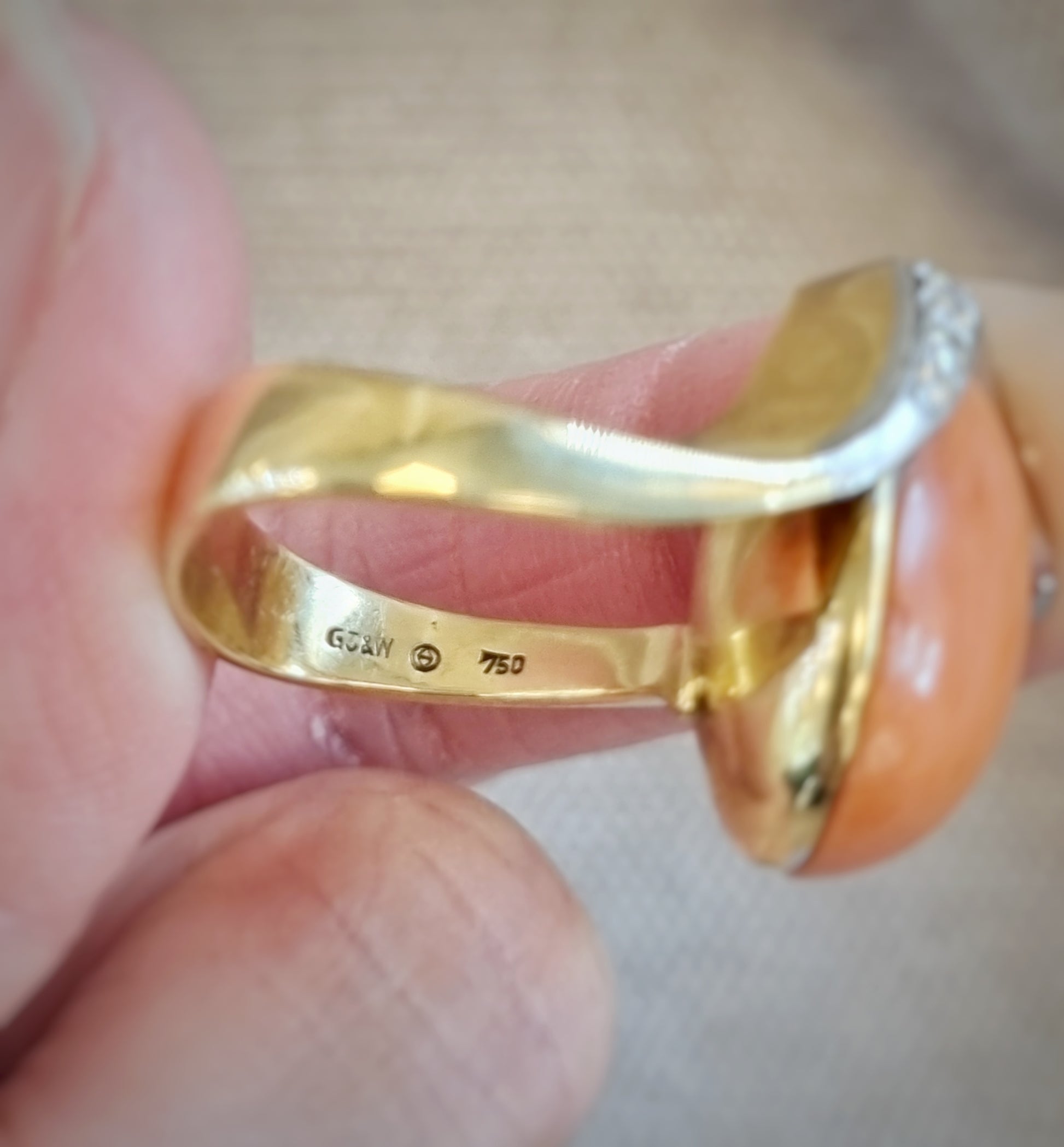 Georg Jensen & Wendel Cocktail Ring 18kt Guld med Koral og Brillanter