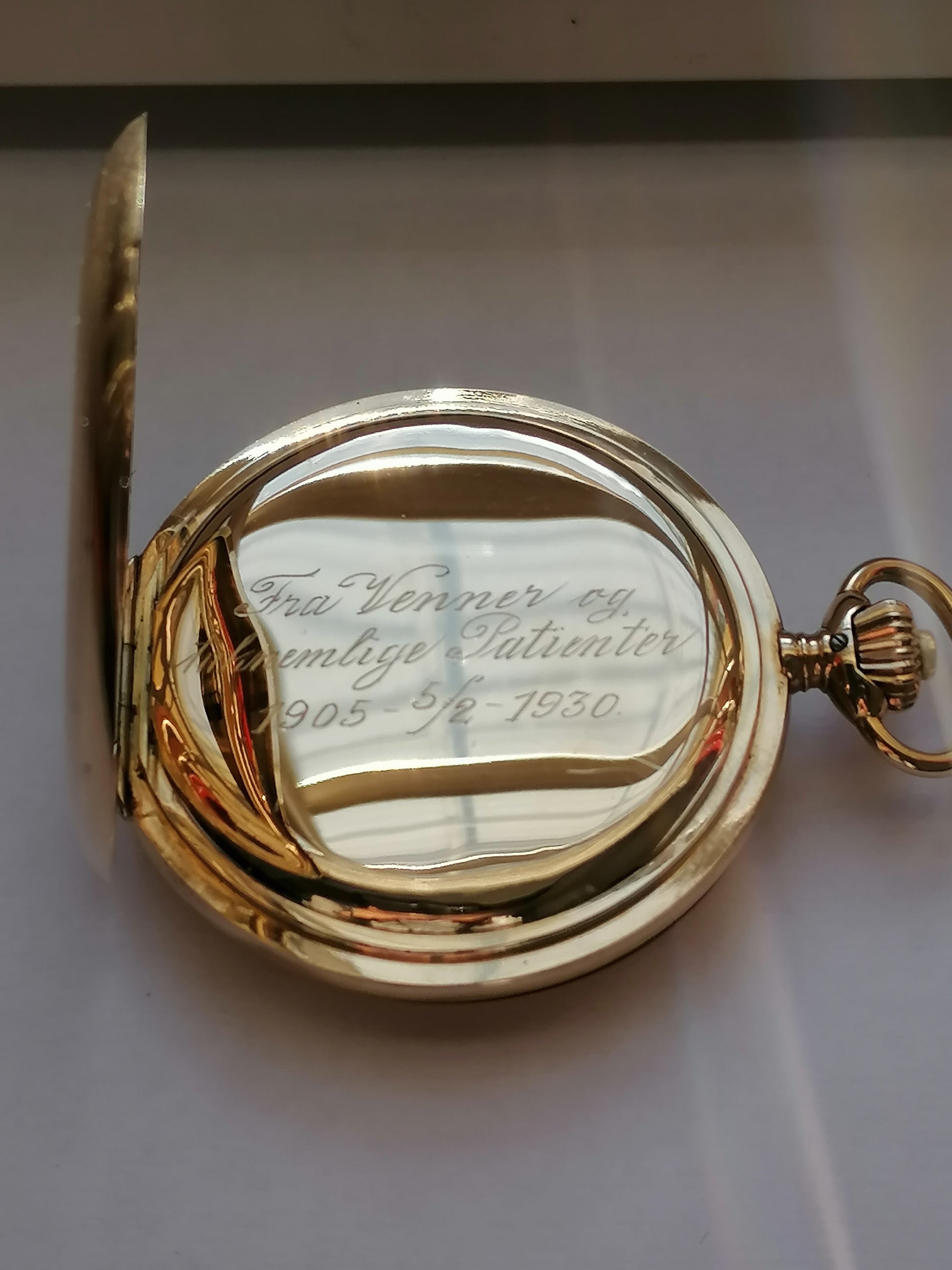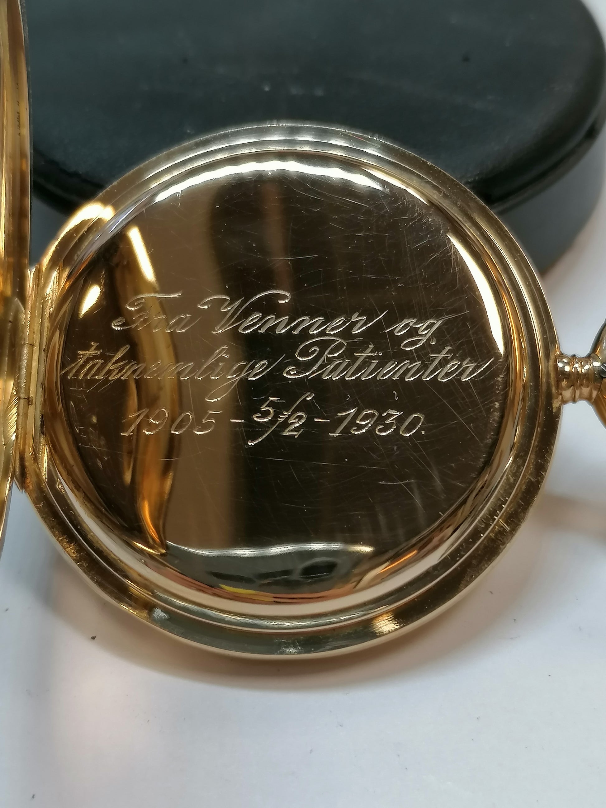 "Fra Venner og taknemmelige Patienter 1905- 5/2-1930" på indersiden.