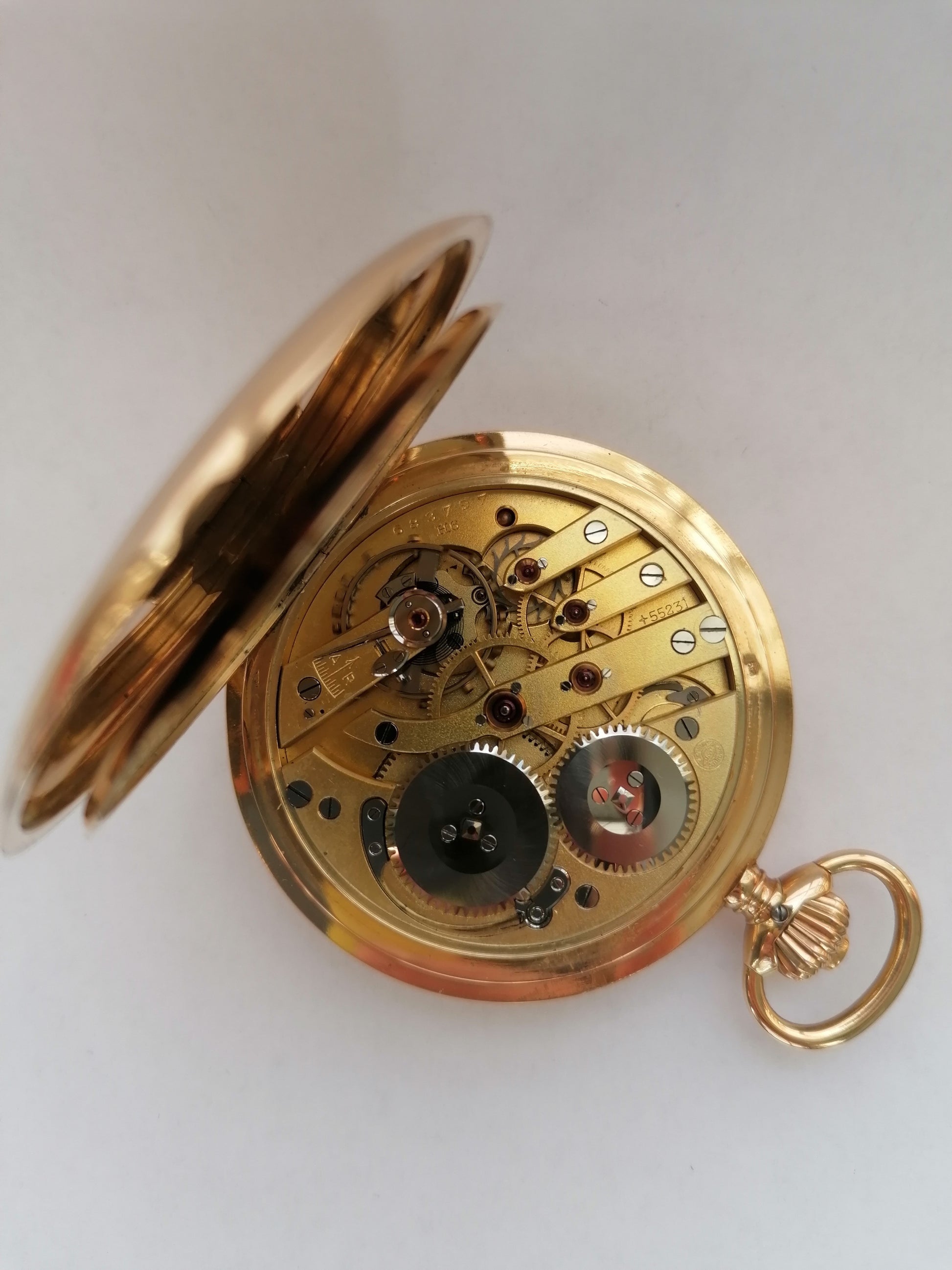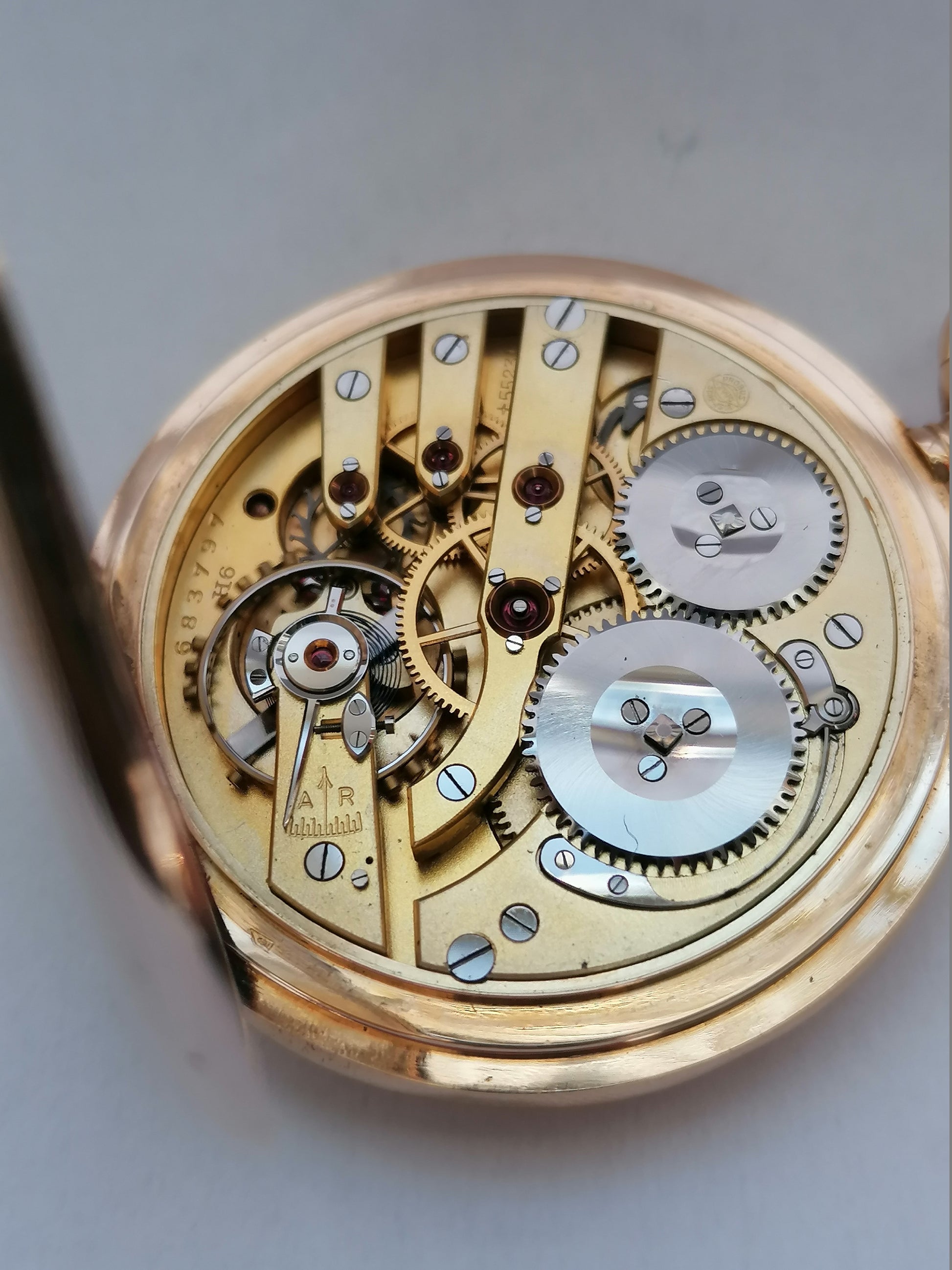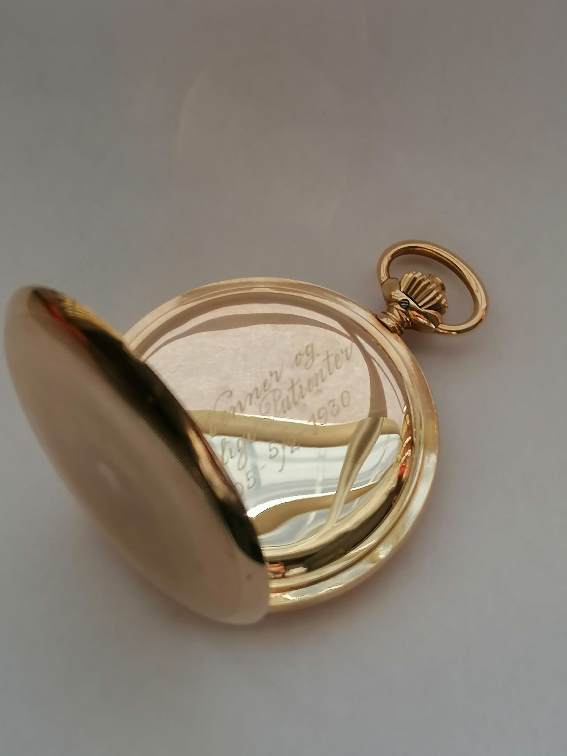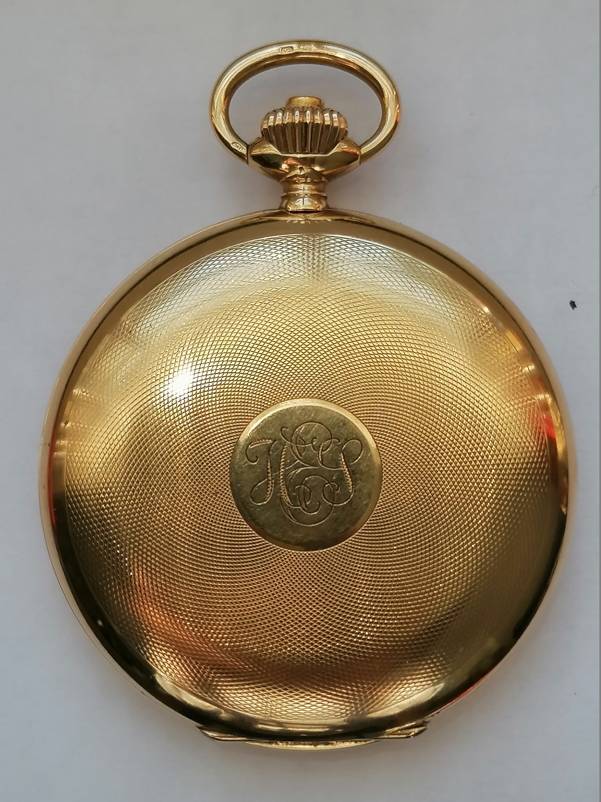 Uret er graveret med intialerne "HES" på forsiden, og graveret