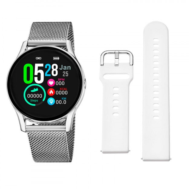 REM/LÆNKE | Rustfritstål Mesh lænke + ekstra Hvid silikone rem |