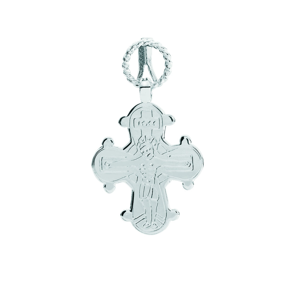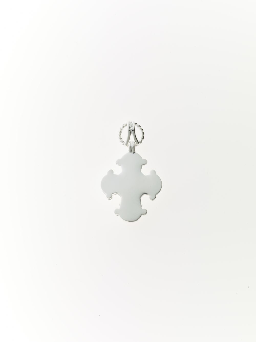 Korset er i sølv og måler 20x17 mm og i kraftig kvalitet og med større øsken.