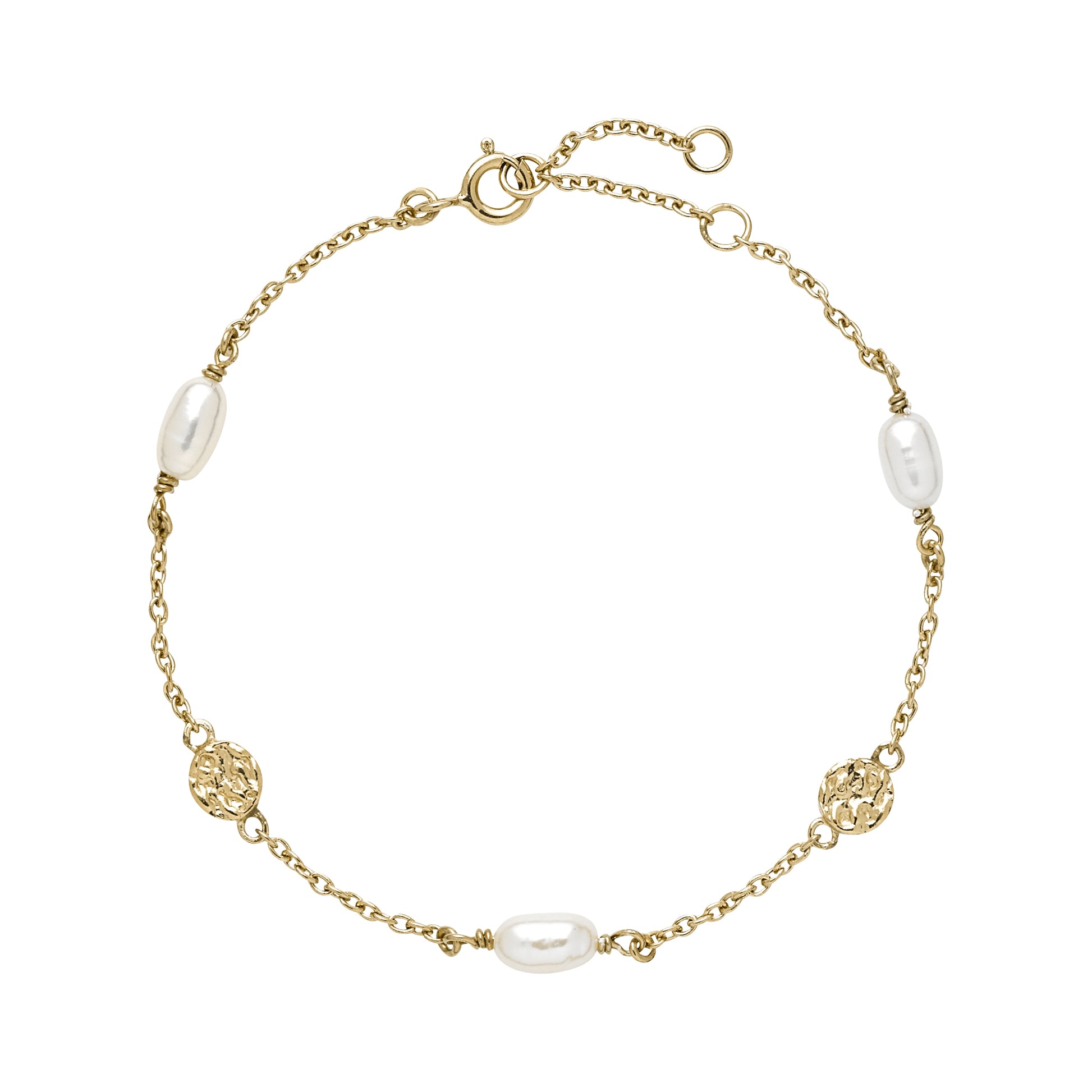 Lund copenhagen Forgyldt Armbånd med Rustik Plader og Perler 9011238-33-F