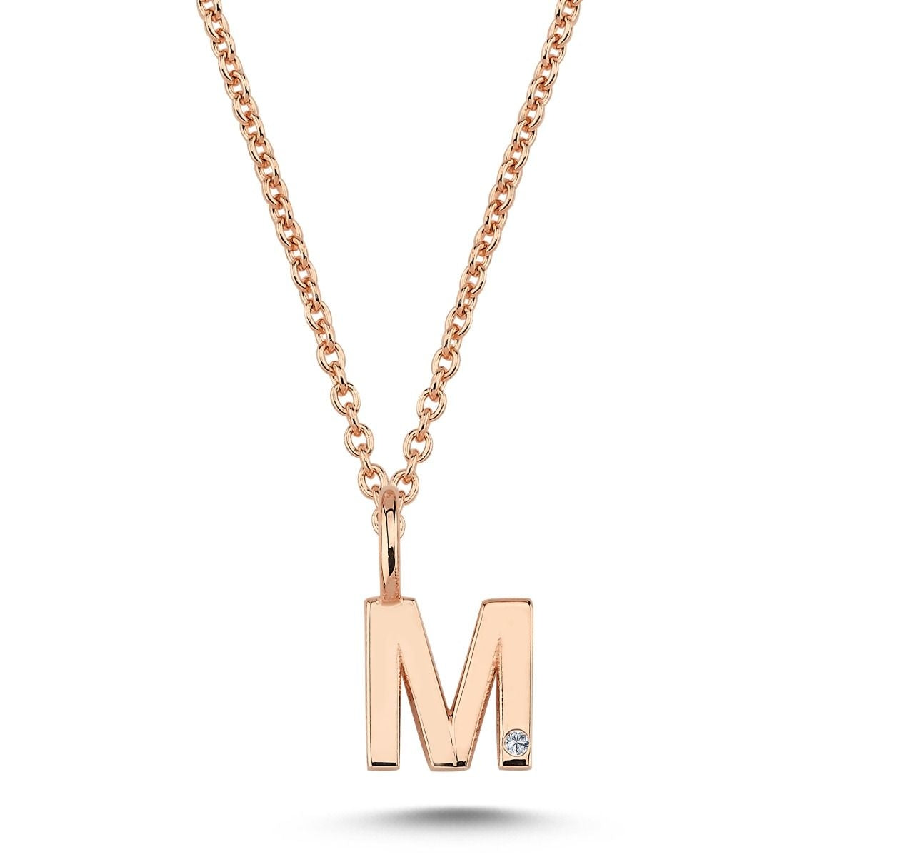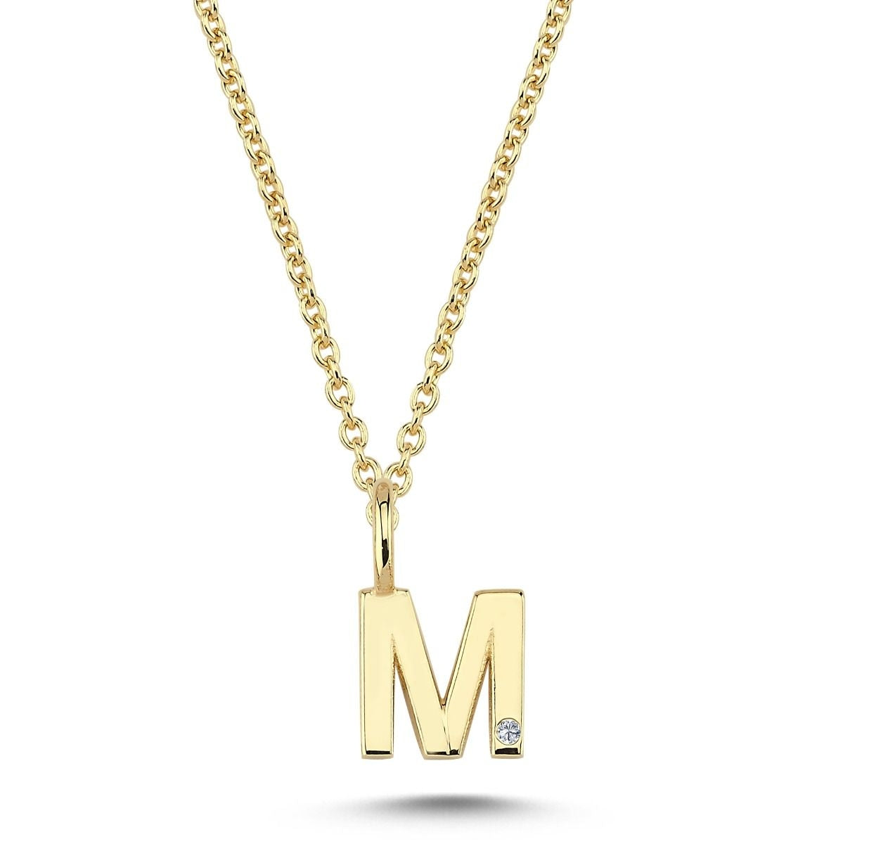 Nuran 14kt Guld Bogstav M Vedhæng med Diamant V2200-M 0005