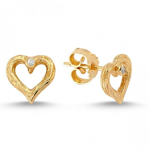 Nuran Nature Hjerte ørestik i 14kt Guld med Hvide Brillianter Ø1757