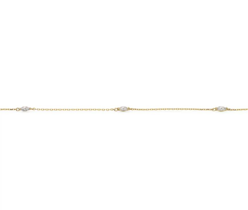 Scrouples 8kt Guld Ankelkæde med Navette slebet sten