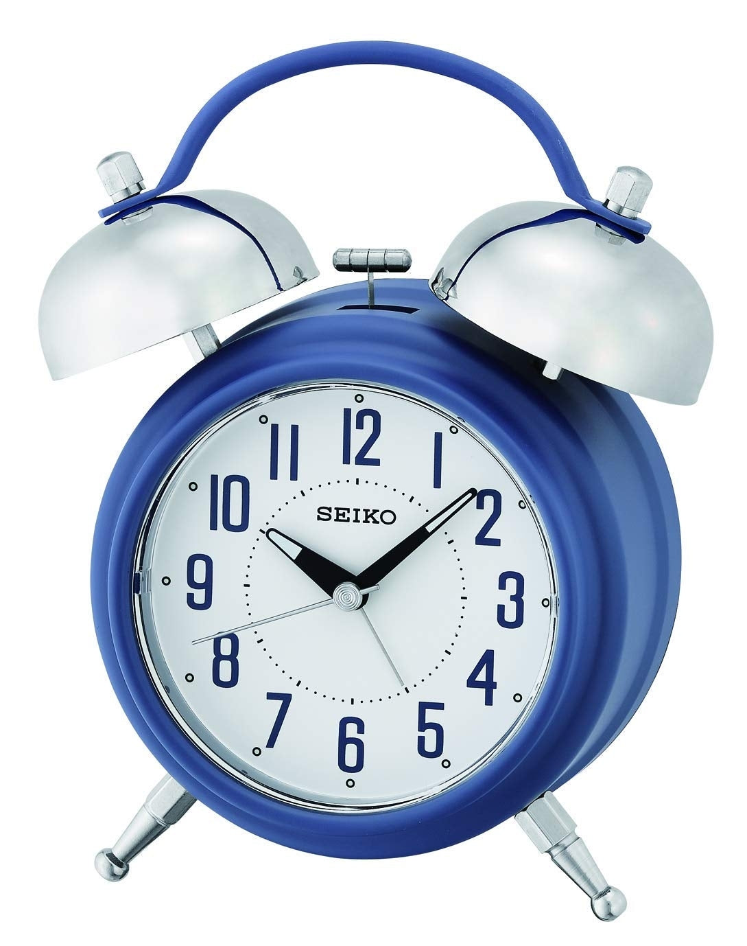 Vækkeur med klokke fra Seiko med rød plastik. Uret har hvid skive og måler 14,2 cm. i diameter. Derudover er uret med quartzværk.