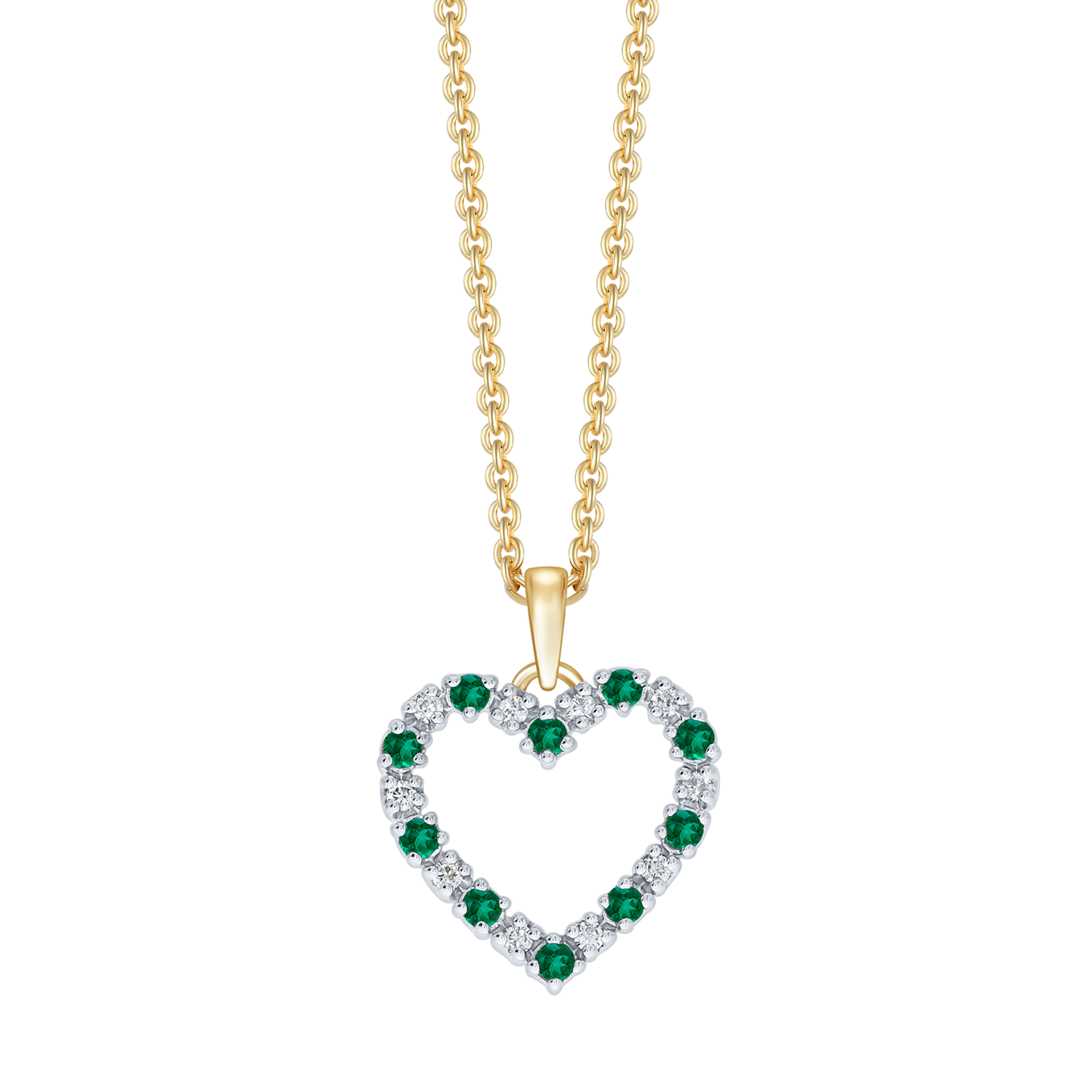 Støvring Design 14kt Guld Hjerte med Smaragder og Diamanter på forgyldt kæde 76257983