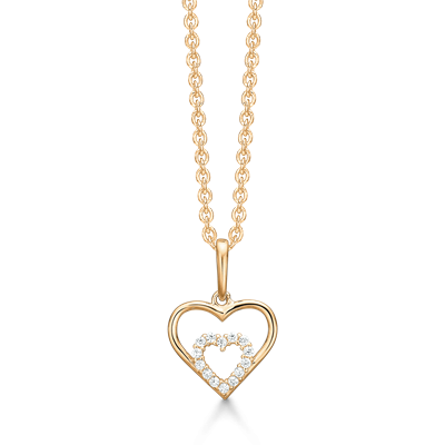 Støvring Design 8kt Guld Hjerte Vedhæng med Zirkonia i Forgyldt Kæde 76242957