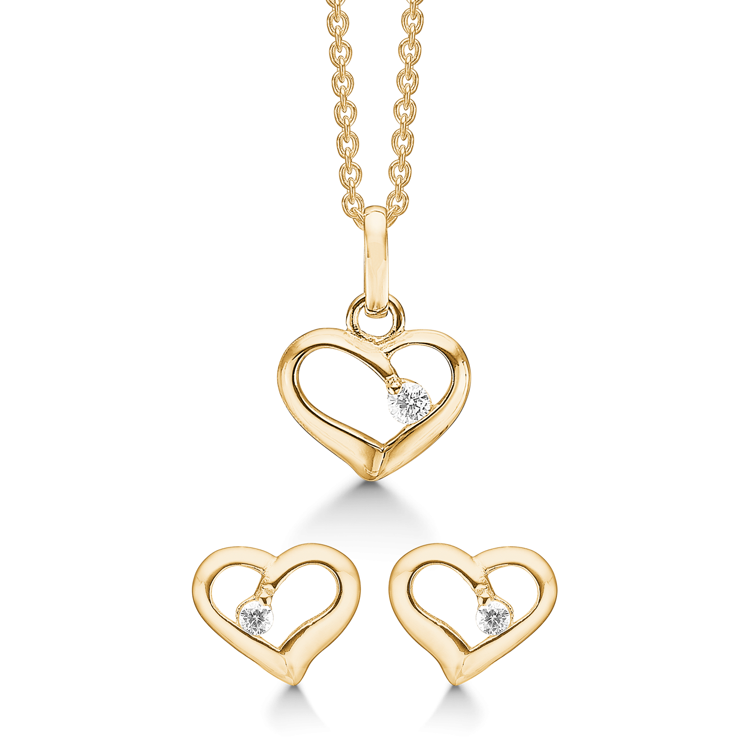 Støvring Design Forgyldt Smykkesæt med Hjerte og Zirkonia FS239068
