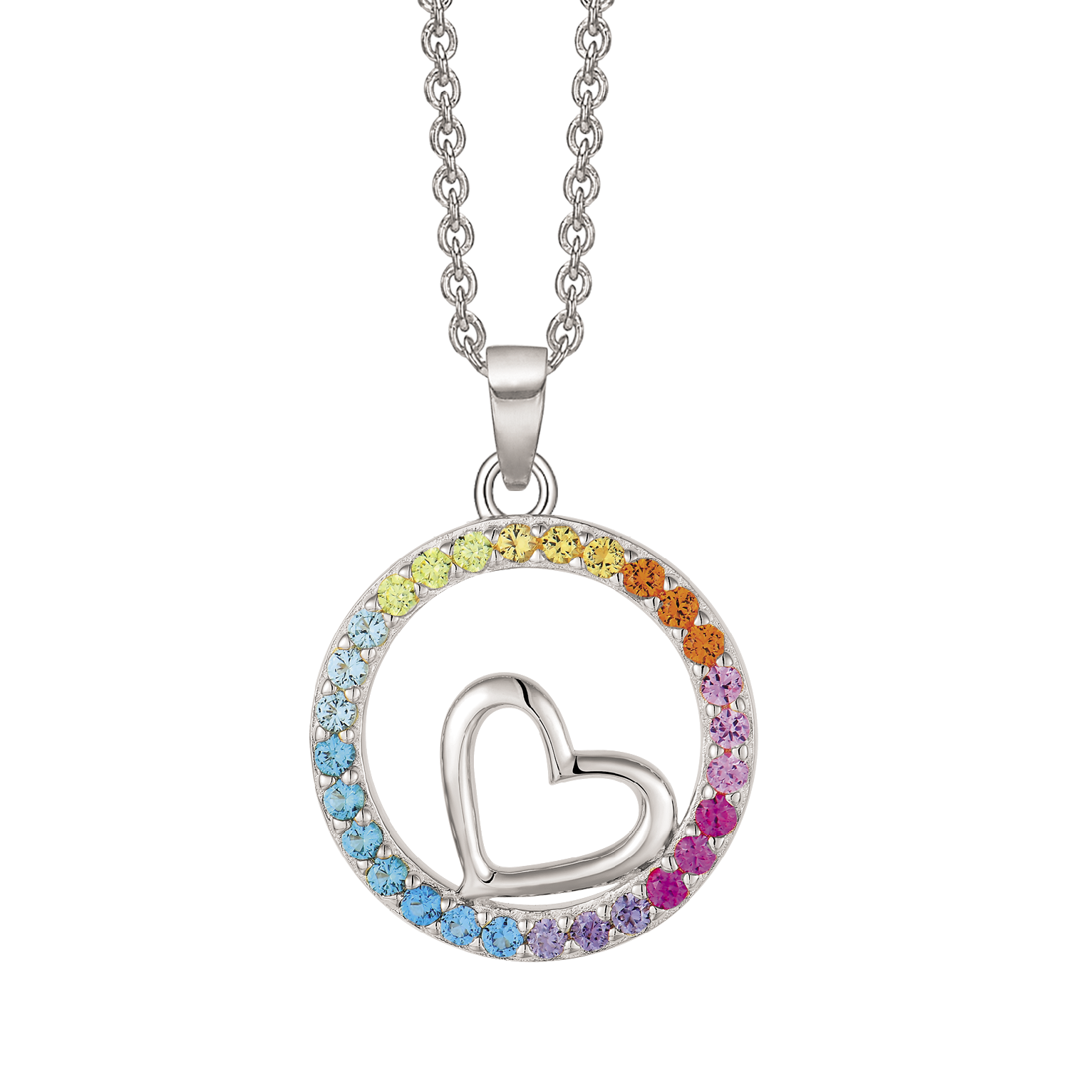 Støvring Design Sølv Cirkel Halskæde med Hjerte og Farvet Zirkonia 16249906