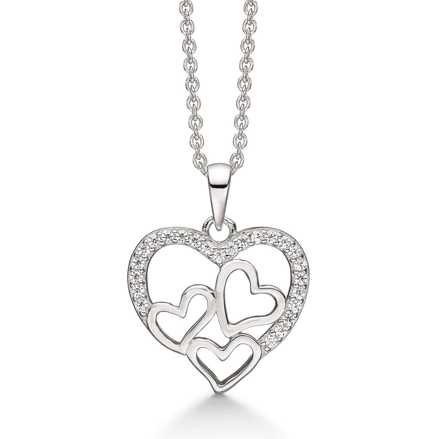 Støvring Design Sølv Halskæde med 3 Små Hjerter Indrammet af 1 Stort Hjerte 16249967