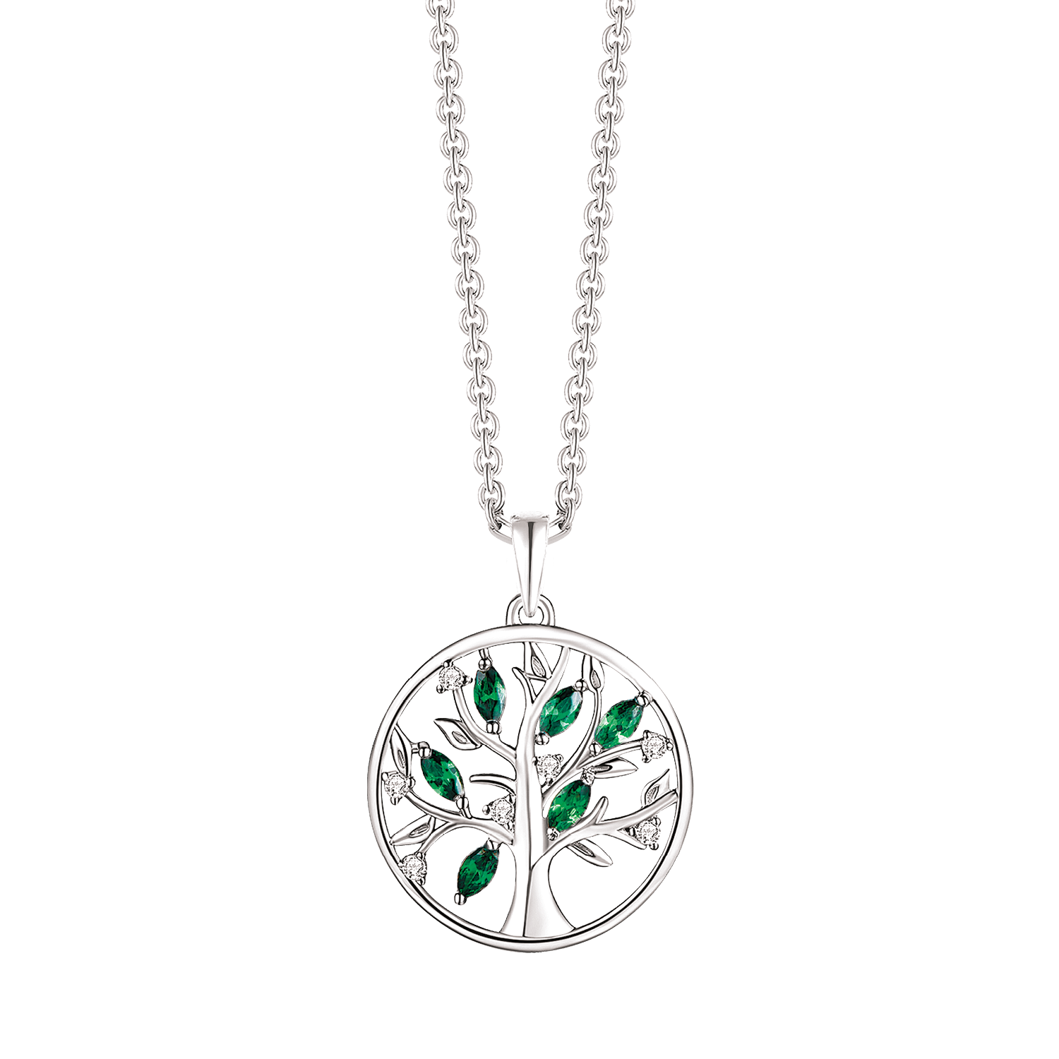 Støvring Design Sølv Halskæde med Livets Træ og Grønne og Hvide Zirkonia 16249878