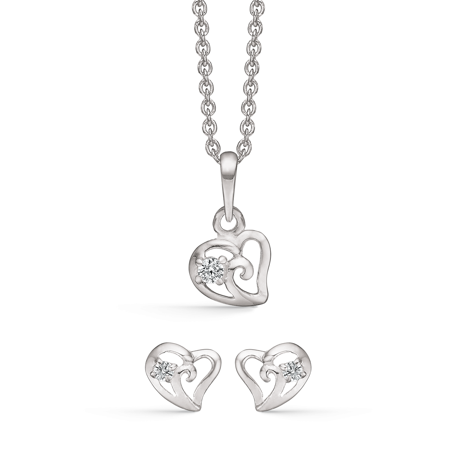 Støvring Design Sølv Smykkesæt med Hjerte Halskæde og Ørestik S148497