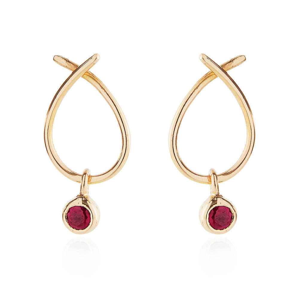 Susanne Friis Bjørner 14kt bøjle ørestik med Rubin vedhæng 3460-5+3461-5-120