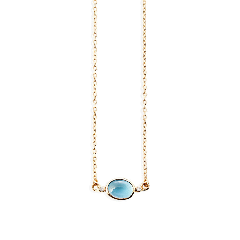 Susanne Friis Bjørner 14kt Guld Halskæde med Swiss Blue Topas og Diamant 5440-5-179
