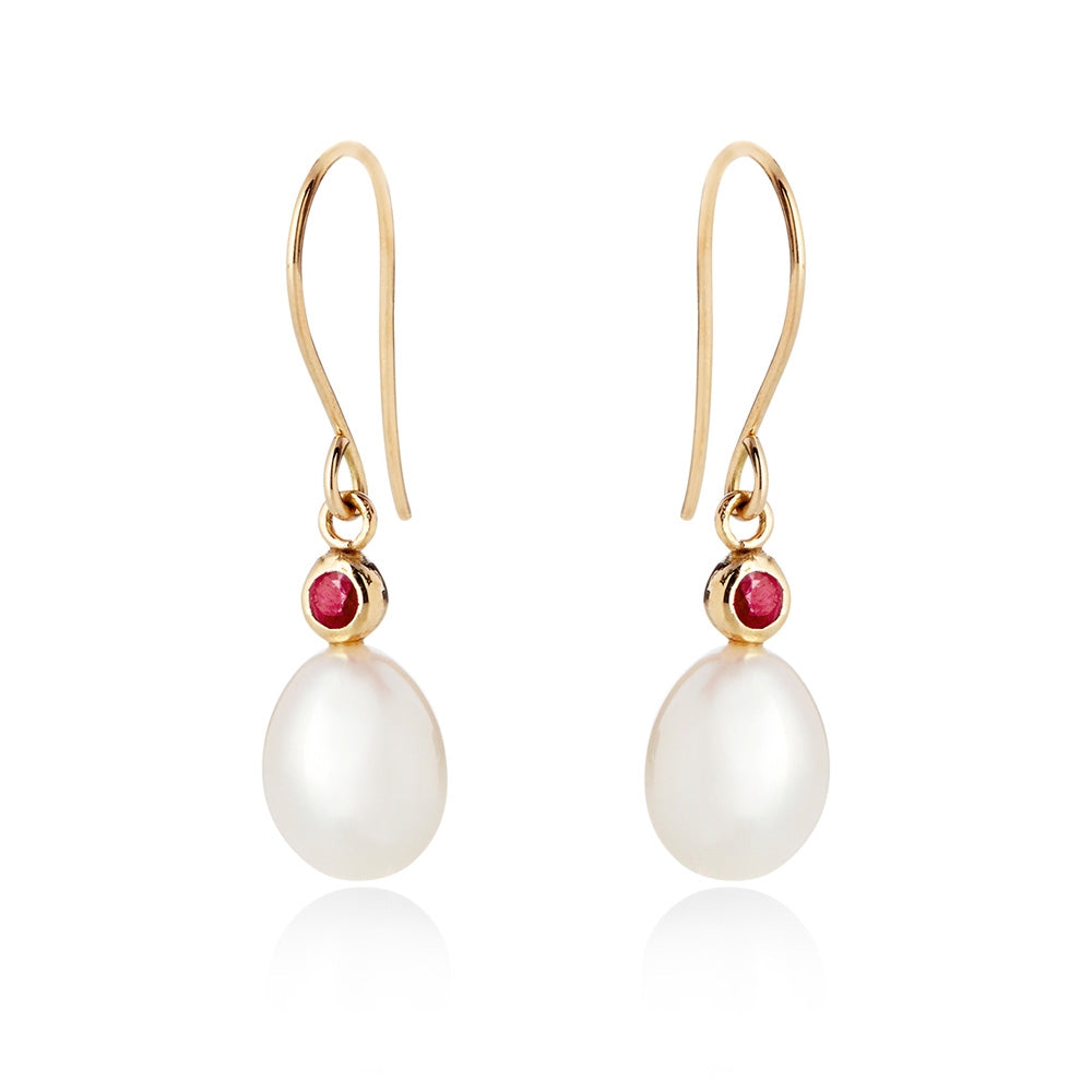 Susanne Friis Bjørner 14kt ørehæng med ferskvandsperle og Rubin 3467-5-120