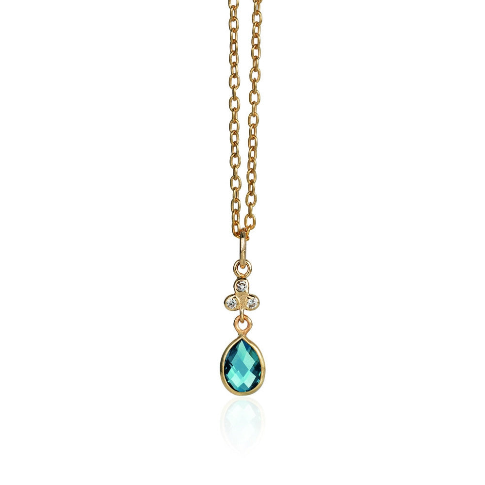 Susanne Friis Bjørner 14kt Vedhæng med London Blå Topas og Diamanter 5416-5