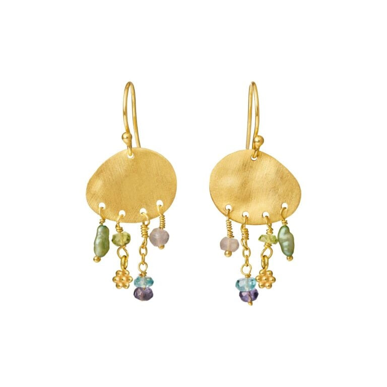 Susanne Friis Bjørner Amorf Ørehæng med Farvede Perler og Sten 5678-2-596
