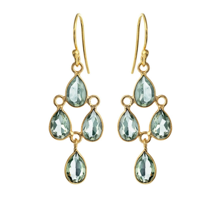 Susanne Friis Bjørner Forgyldt Chandelier Ørehæng med Grøn Kvarts 5267-2-107