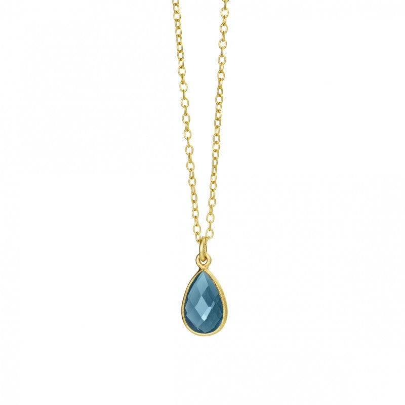 Susanne Friis Bjørner Forgyldt Halskæde med London Blå Krystal 1409-2-174