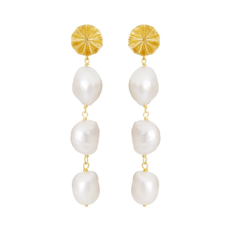 Susanne Friis Bjørner Forgyldt Ørehæng med 3 Barokke Ferskvandsperler 5676-2-900