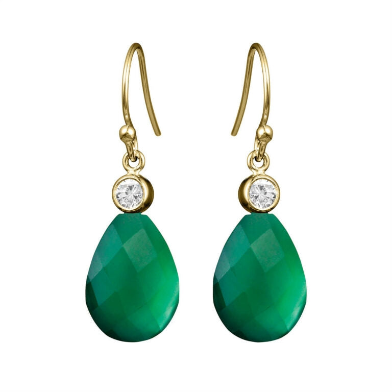 STEN | Dråbeformet facetteret grøn agat, Hvid syntetisk kubisk zirkonia |