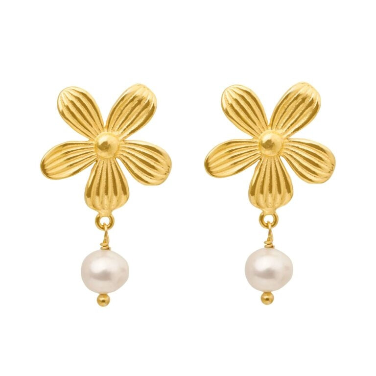 Susanne Friis Bjørner Forgyldt Ørering med Riflet Blomster og Ferskvandsperle 5696-2-900