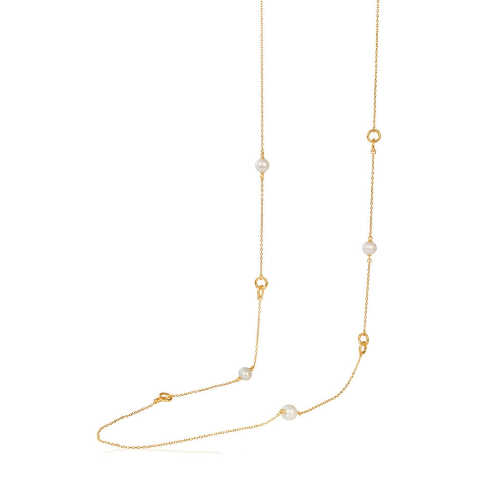 Susanne Friis Bjørner Lang forgyldt kæde med Ferskvandsperler og Hamret led 1494-2