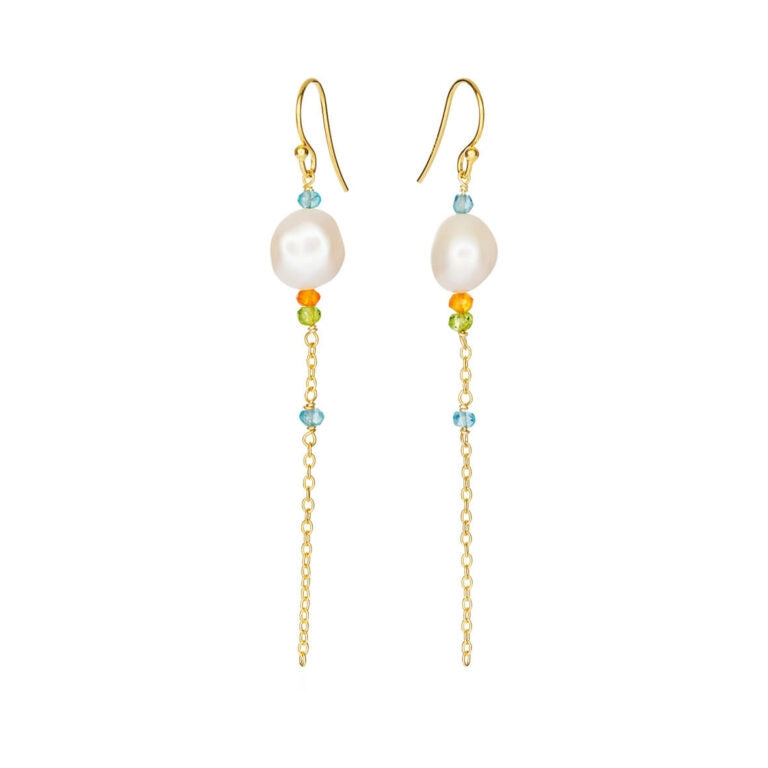 Susanne Friis Bjørner Lang Ørehæng med Sten og Ferskvandsperle 5642-2-572