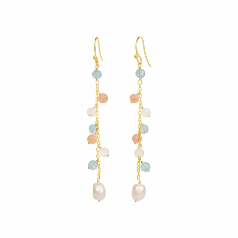 Susanne Friis Bjørner Ørehæng med Akvamarin, Ferskvandsperler, Peach og Hvide Månesten 5665-2-579
