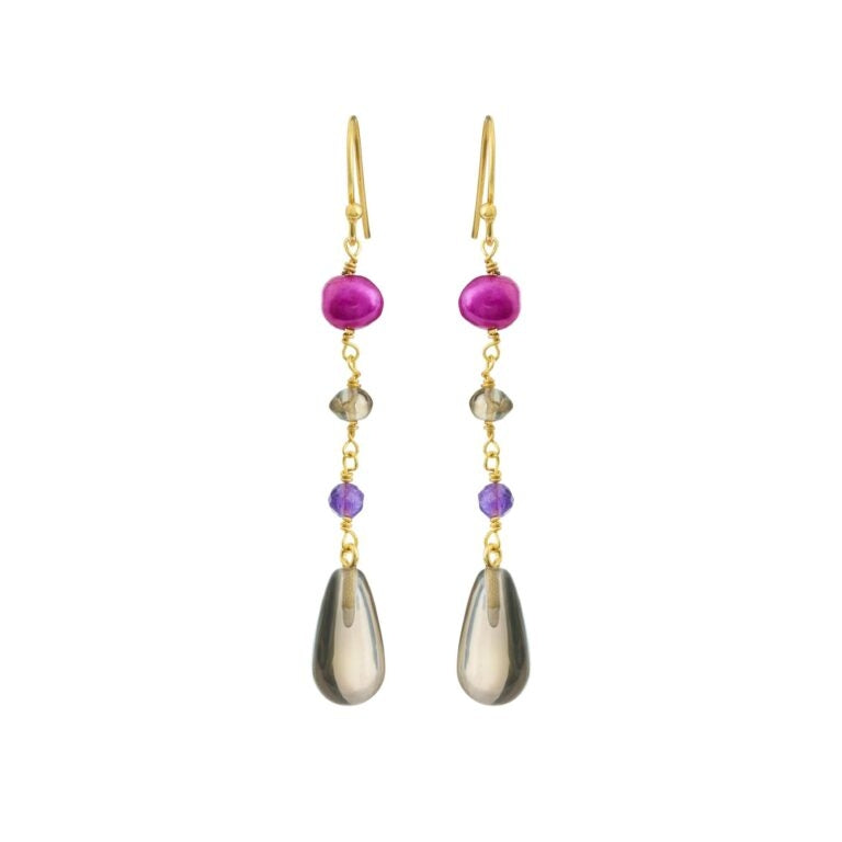 Susanne Friis Bjørner Ørehæng med Ametyst, Ferskvandsperle og Røgkvarts 5670-2-589