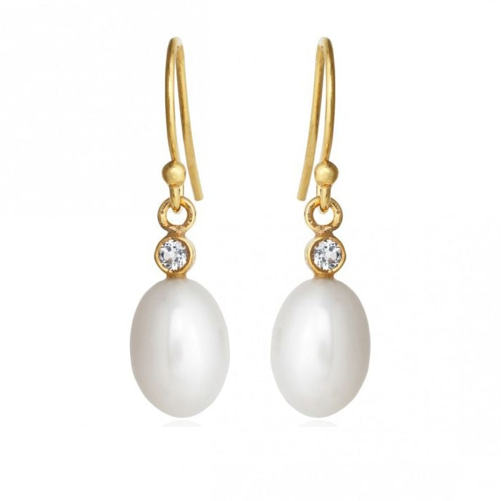 Susanne Friis Bjørner Ørehæng med Ferskvands perle og Hvid Topas 5166-2-900