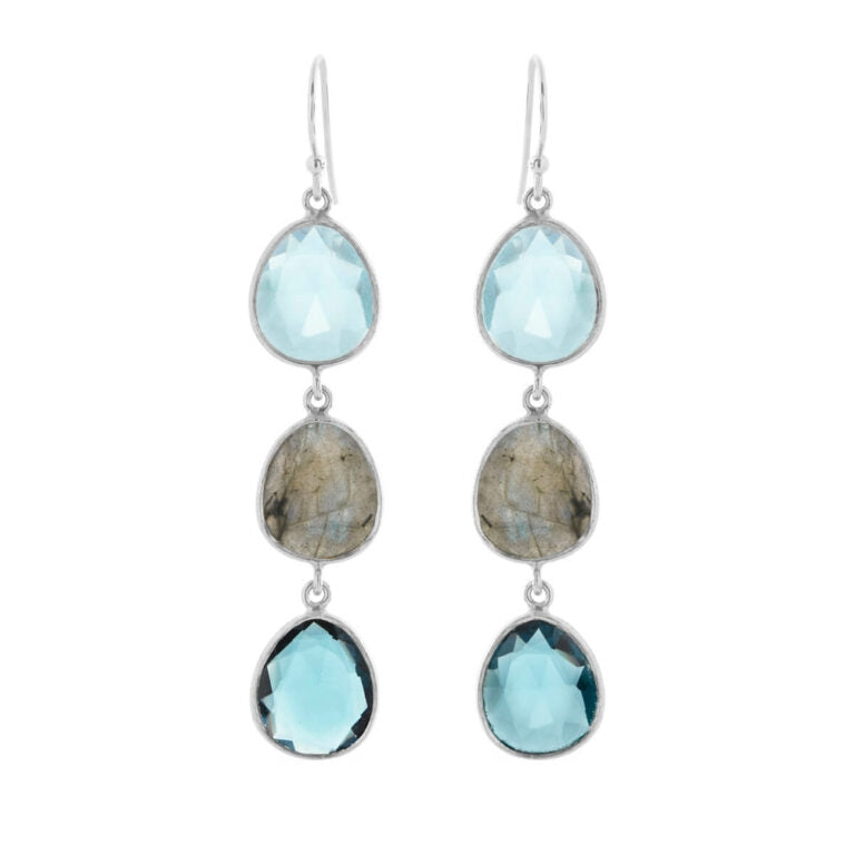 Susanne Friis Bjørner Ørehæng med Labradorit, London Blå Krystal og Syntetisk Topas 5567-1-554