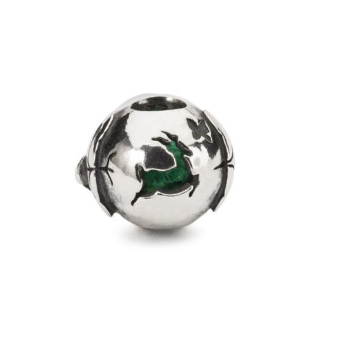 Trollbeads Day Jord er en Aventurin indrammet af et detaljerigt design i sølv. Gå en tur og mød det eventyrlige liv hos den pippende fugl, den smukke sommerfugl, de jordbundne træer og den majestæstiske hjort.
