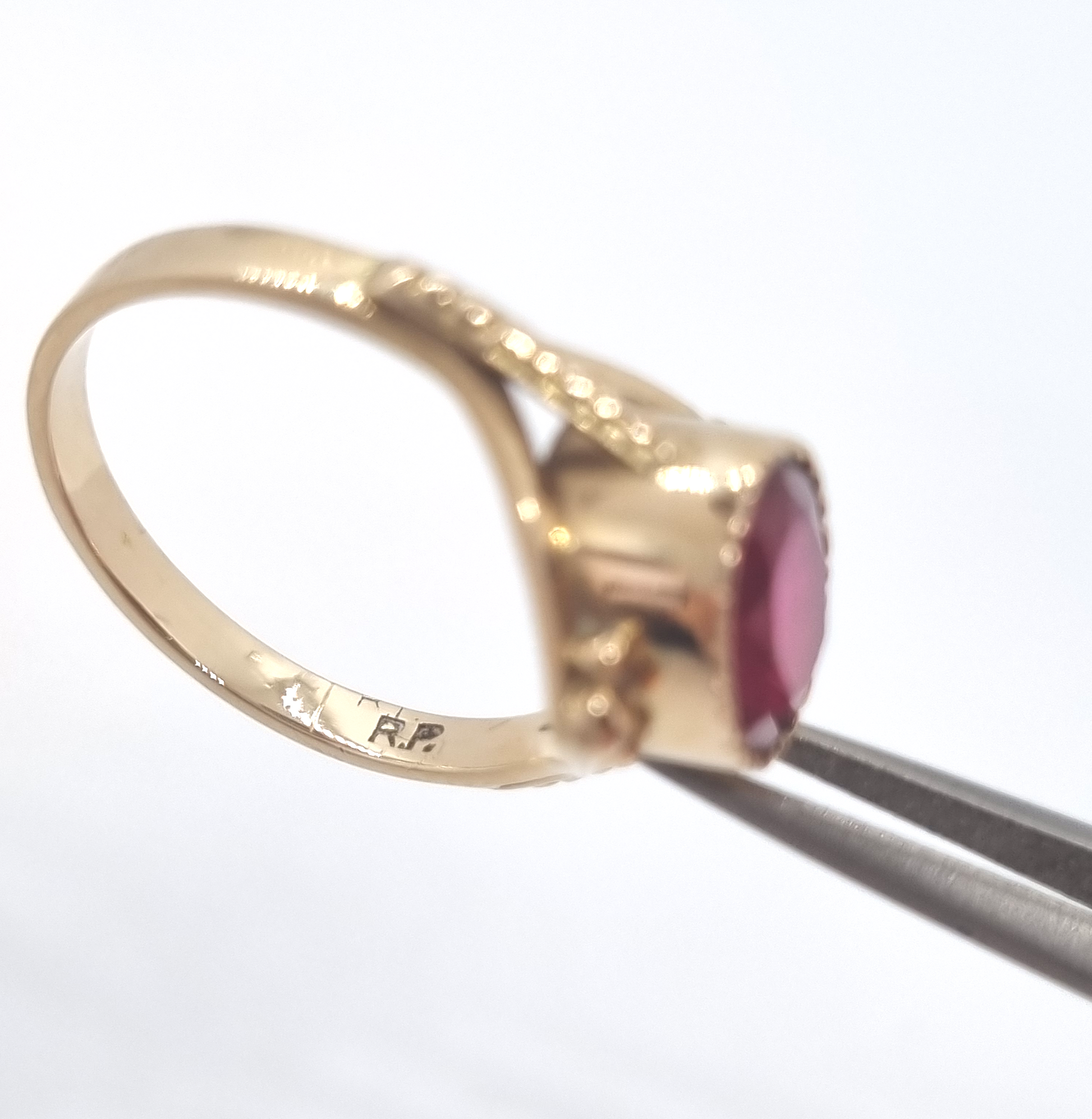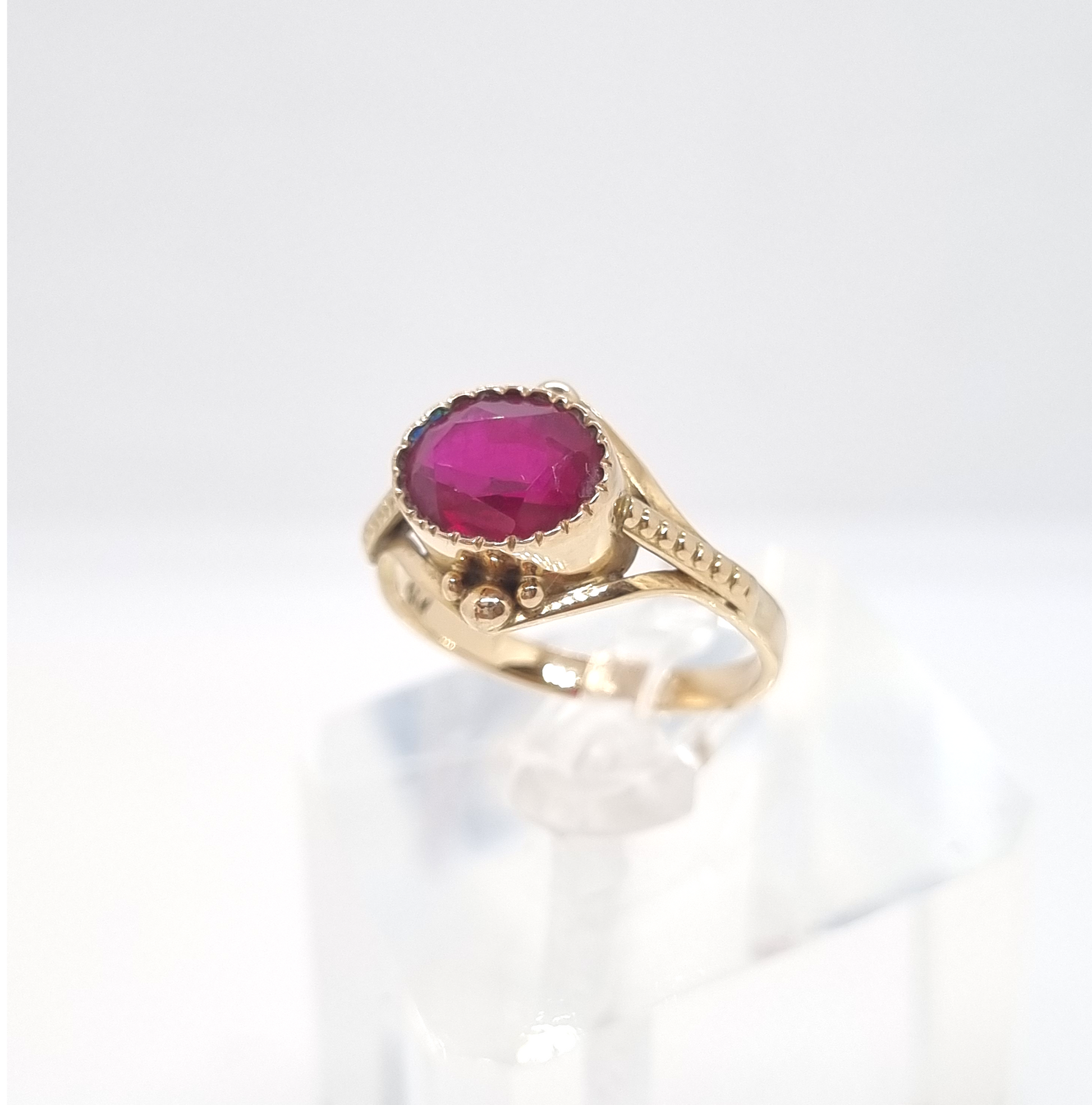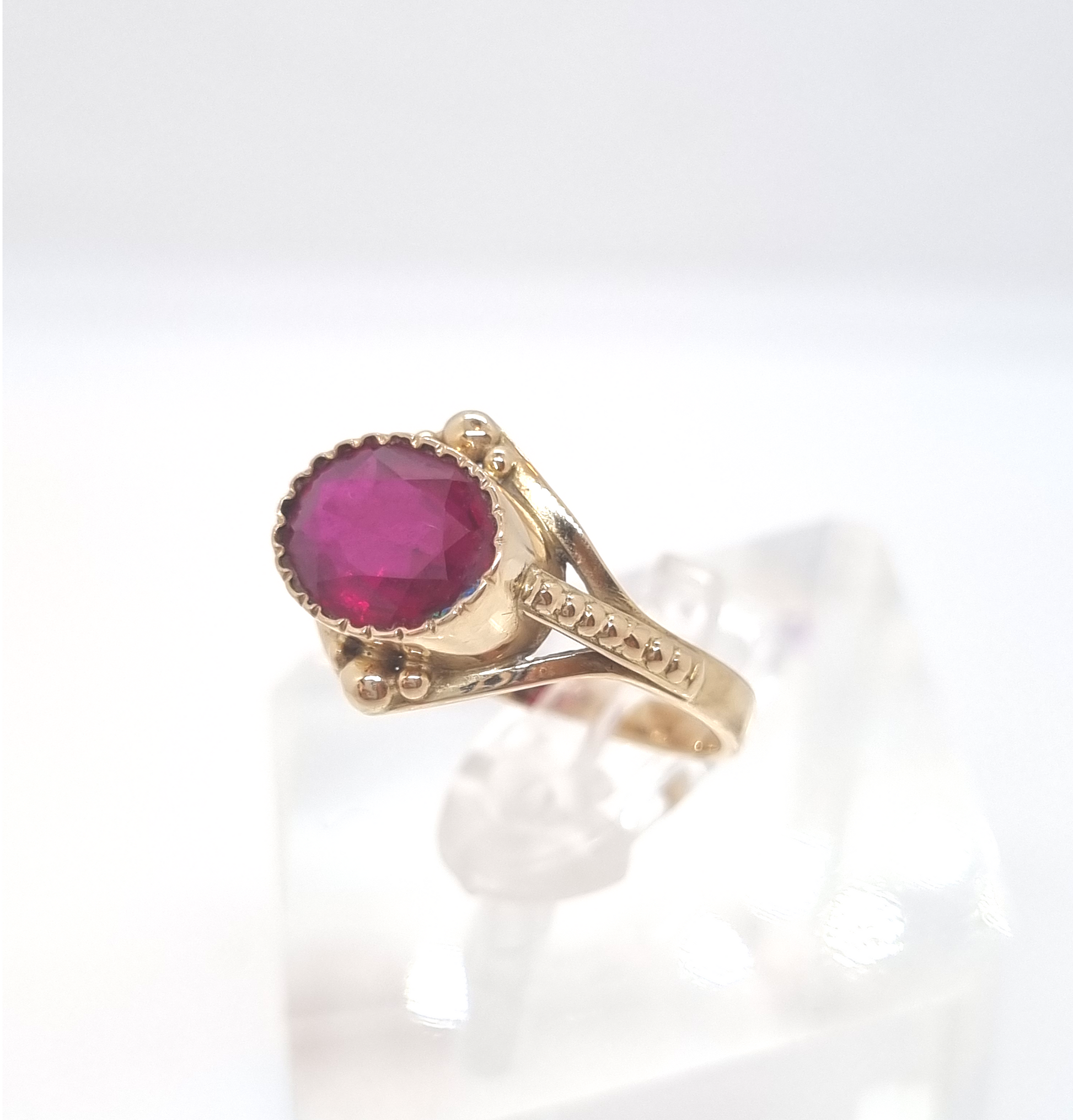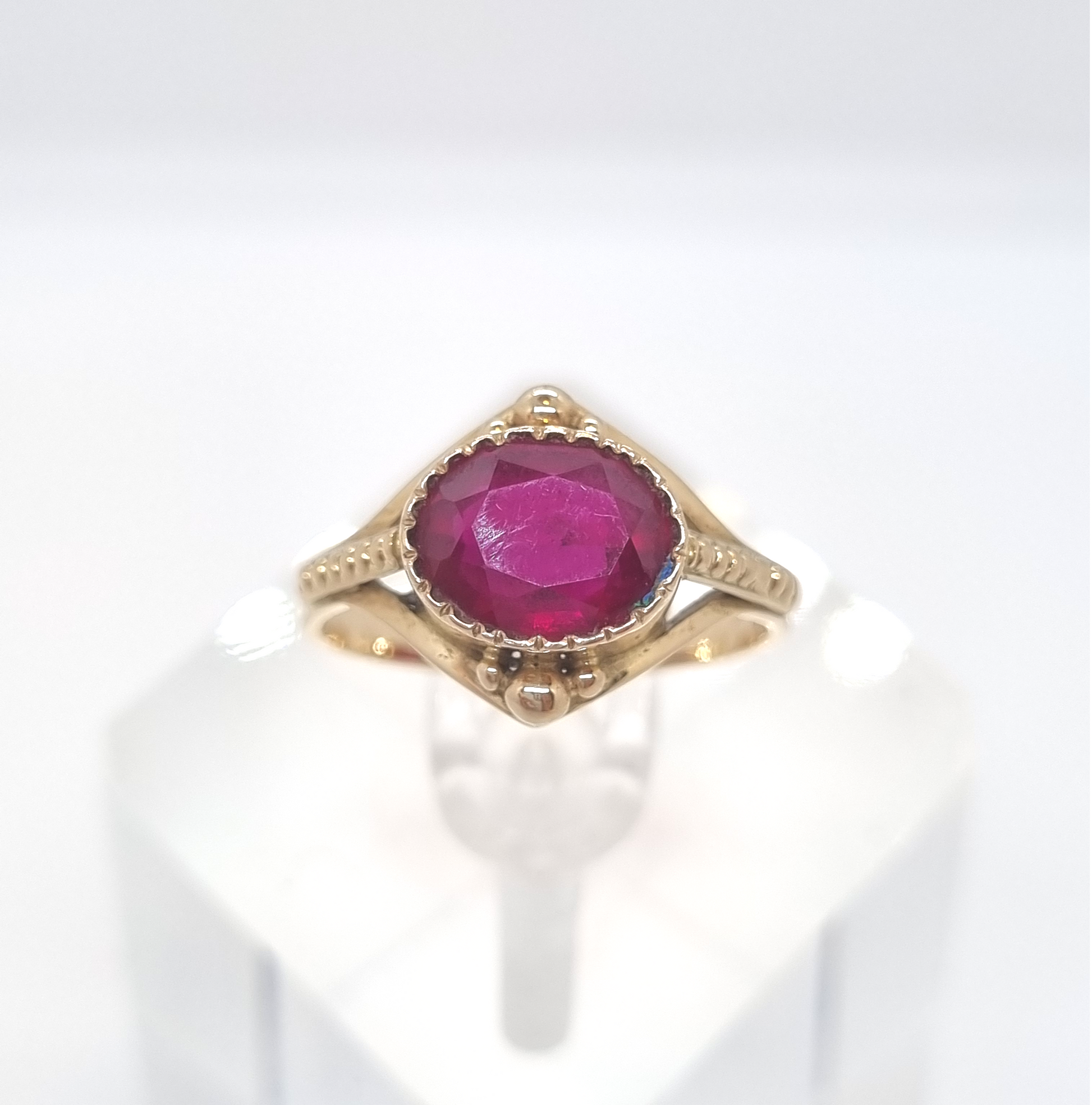 Vintage 14kt Guld Ring med Oval Rød Rubin